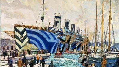 During the First World War RMS Olympic safely carried 200,000 passengers and troops. A familiar sight during her wartime career she earned the nickname ‘Old Reliable’; one that stuck throughout the remainder of her merchant career until she was decommissioned in 1935 and broken up.