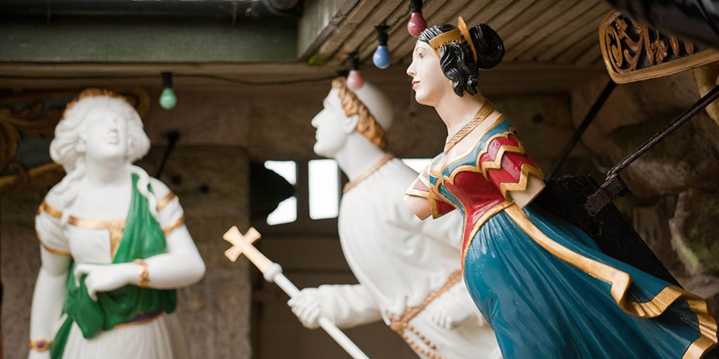 Figureheads are essentially a carved representation of the spirit of the ship. This can be in the form of people, beasts or mythological creatures. They were primarily built of wood and attached to the bow of the vessel.