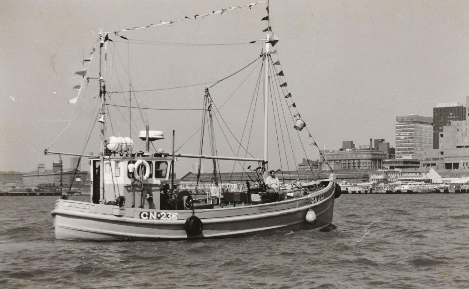 Sylvia Sharples was not born to the sea but came to love and work aboard a fishing vessel in her thirties. She had taken on a guesthouse in Port Penrhyn in North Wales in 1973. Occasionally she arranged for guests to be taken out on angling trips aboard the Manx Beauty, a 1937 wooden fishing vessel, and she befriended the skipper. This was a particularly difficult time for her, and in 1975 her marriage broke down. She asked Skipper Arthur Maddock if she could move onto the boat as a temporary measure.