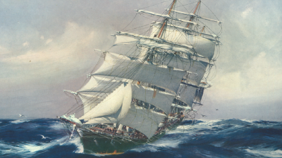 In addition to his duties for Lloyd’s Register, Waymouth was also a very respected Naval Architect for his work designing contemporary ships. Known as an authority on composite ship building, he designed the clipper ships, Leander (1867) and Thermopylae (1868). Of which, Thermopylae set a record for crossing between London and Melbourne in just 60 days, and still holds the world record for a round-trip run between London and the Far East from her maiden voyage. Waymouth also designed Sir Edward Sullivan’s schooner ship, Shamrock, and became a crucial figure in the establishment of Rules for Steel Ships (1868, illustrated by the surveyor, Harry Cornish).