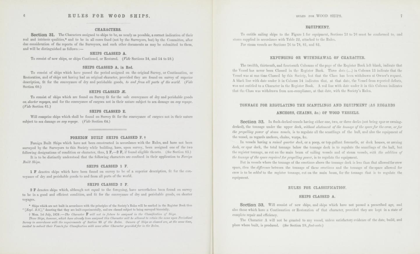 Through recent digtisation, Lloyd’s Register Foundation Heritage Centre have made available the Lloyd’s Register Rules and Regulations, dating from 1849 until 1976 for free, online viewing.