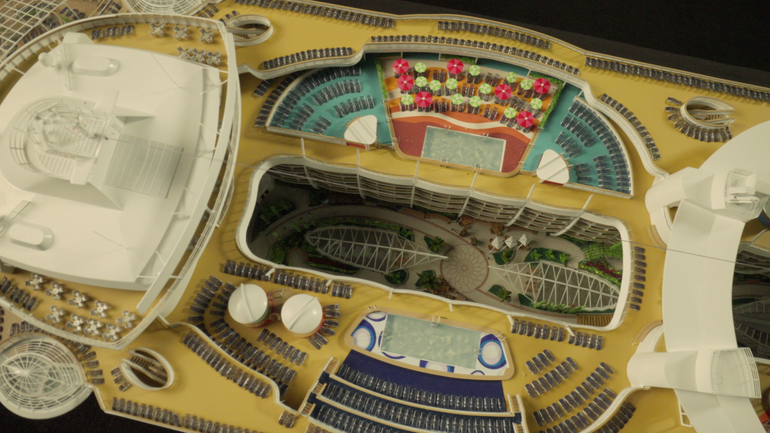 The Maritime Innovation in Miniature series offers a detailed look at a unique historical collection of ship models that can transform how we understand the past. While the original vessels may no longer exist, their models endure - providing an extraordinary glimpse into maritime innovation through miniature. This is a miniature model of the Oasis of the Seas, the world's largest cruise ship at the time and a pioneer in sustainable maritime design.