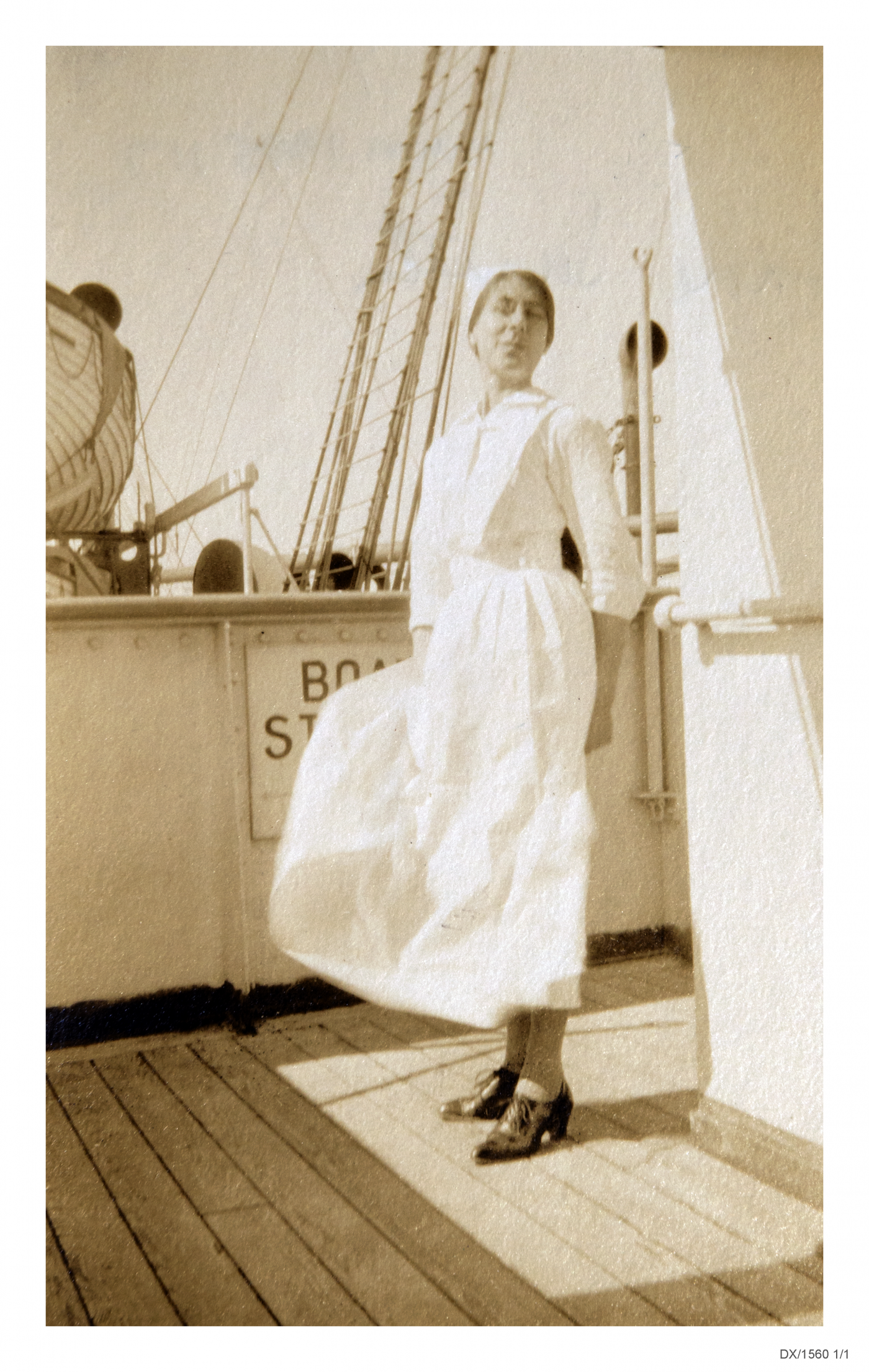 Anne appears to be fairly well off and educated. Her letters are confidently written with correct spelling and grammar, and she does not appear to find letter writing a chore or a difficulty. Her comments about life at home include ‘I am glad to hear Lady Eveline is engaged to Mr. Aryles, I don’t know why! but I always thought it would be a match.’ (DX/1560/2/4) and ‘when are the tenants due to leave Holmwood, it would be rather nice if I could spend a little time there after this trip’ (DX/1560/2/7). Perhaps had the First World War not removed so many potential husbands from British society, Anne would have been travelling as a middle class passenger and a wife, but instead she is making her own way in the world and managing to combine her interest in travel with her need for employment.