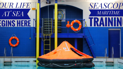 The course was in Fazakerley, a Liverpool district that must have been named by Charles Dickens. A huge sign proclaimed that Seascope Maritime Training is based in Liverpool and Antibes, a geographic combination I’ve never before encountered. Inside, I checked in and looked around me: there were big lads, one with a tattoo on his face. There were young women in firefighting gear. There was a full-size enclosed lifeboat in the courtyard. It was busy and a little intimidating in the way that entirely novel experiences amongst strangers are.