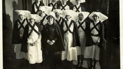 By the 1920s the Society was running seven hospitals – the Dreadnought Seamen’s Hospital in Greenwich; the Albert Dock Hospital in East London; King George’s Sanatorium for Sailors in Hampshire; the Queen Alexandra Hospital in Marseilles; the Angas Convalescent Home in Kent; Tilbury Hospital in Kent; and the London School of Tropical Medicine in central London. Crucial to the smooth and successful running of the Society’s hospitals were the hundreds of female nurses who worked in them and were trained to meet the specific needs of their seafaring patients.